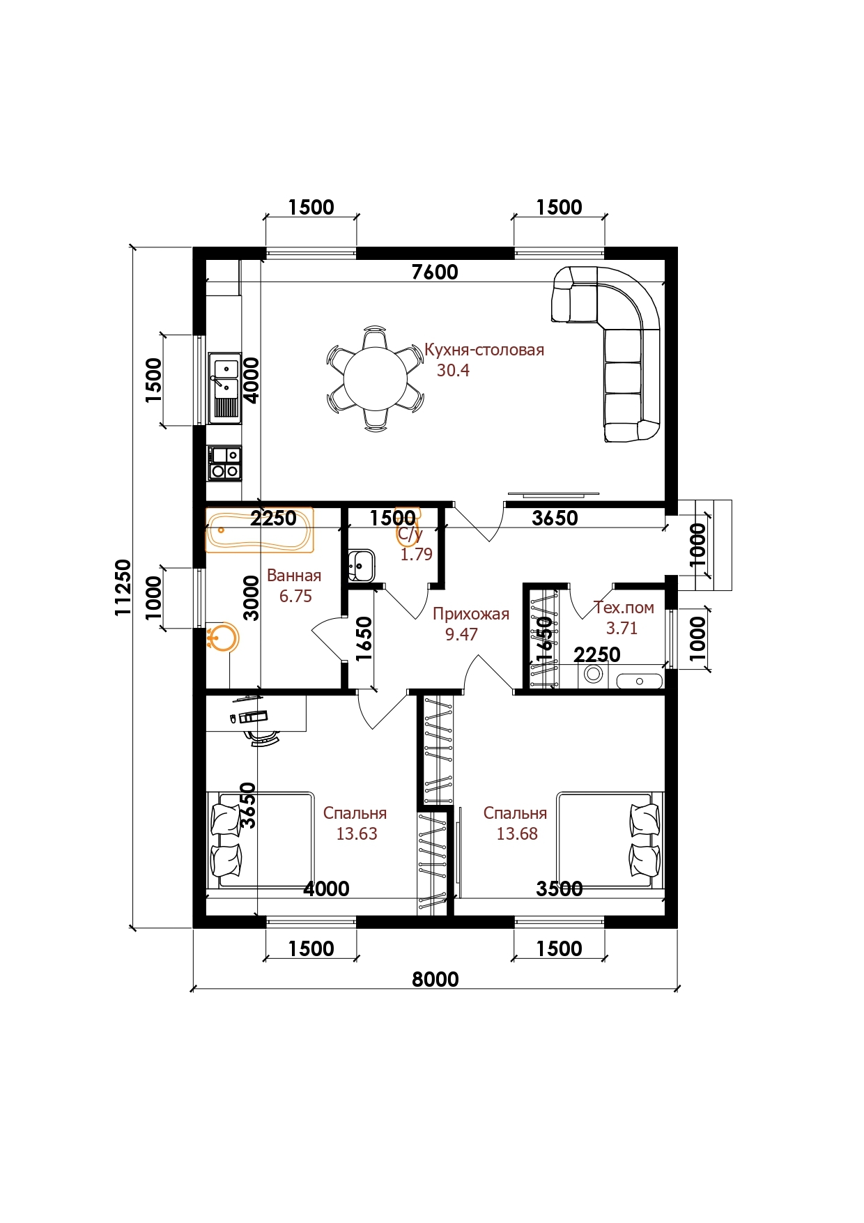 Площадь: 80 м²