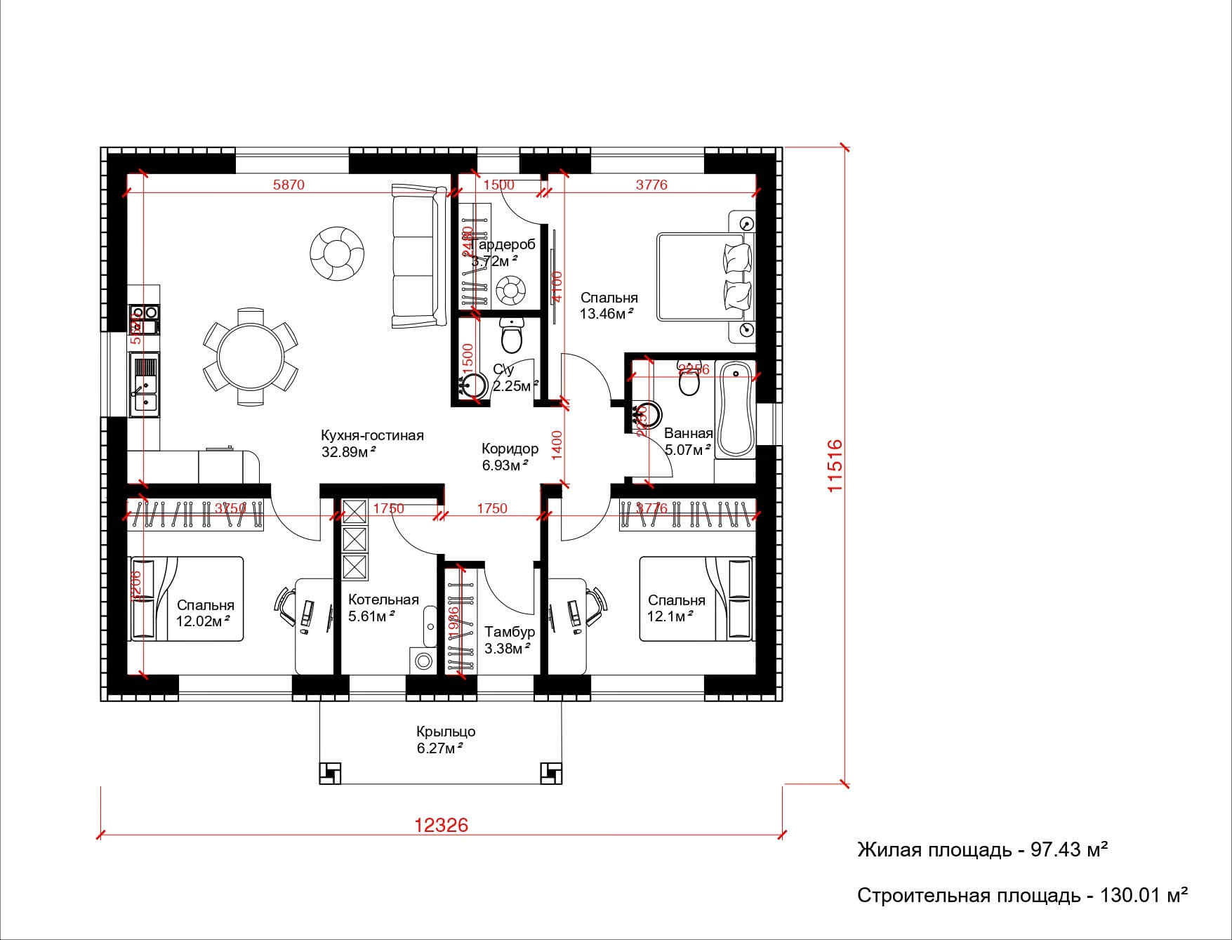 Площадь: 110 м²